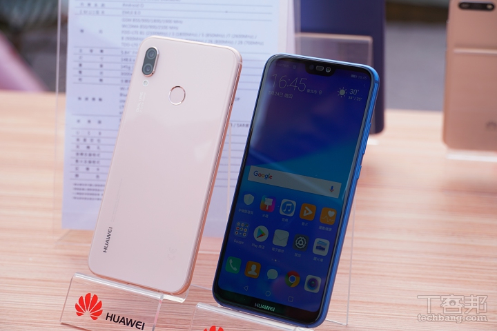 華為今日推出的第二款手機為 HUAWEI nova 3e,外觀採用 2.5D 炫彩玻璃、模擬光線透入深海的自然水光紋,推出克萊因藍和櫻語粉兩色,硬體採用 Kirin 659 處理器搭配 4GB RAM/64GB ROM,螢幕為 5.84 吋 Full HD+ 瀏海螢幕,具備 3,000mAh 電池。