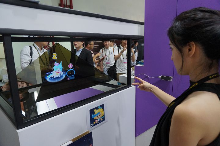 在 InnoVEX 的 XR EXPRESS TW 主題館中,狂點軟體帶來了一台「全像互動裝置」及對應的遊戲軟體「AliGala」。裝置部分,該公司將 3D 建模完成的可愛角色與文字,用全像投影呈現在操作者面前。狂點軟體也表示,透過平面顯示器達成的全像投影只是其中一種方式,他們也可以透過雷射或特殊的投影機,按照不同場域與型態,來滿足客戶的需求。