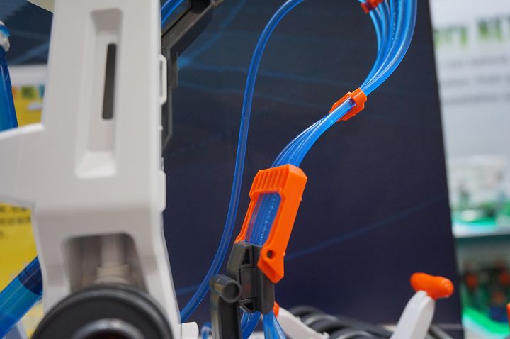 ▲ 液壓機械手臂另一個採用電池驅動的「動力機器手臂」不僅小孩喜歡,更意外吸引到大人市場,成為全球最多自造者課程指定的教育套件;有些 Maker 甚至會用將動力機器手臂與 Arduino 結合,編寫軟體將玩具改造成機器人,這樣的多樣性發展可說遠遠超出了 Pro’sKit 起先為科學玩具設計的市場定位之外。