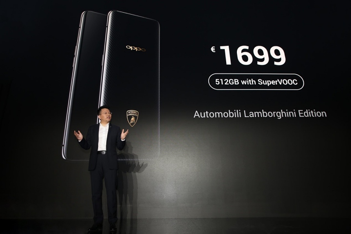 OPPO 在 Find X 發表會上找來頂級超跑品牌藍寶堅尼合作,發表 OPPO Find X 藍寶堅尼版,機身利用特殊蝕刻工藝創造出懸浮立體的藍寶堅尼 logo,整台手機也運用藍寶堅尼的碳纖維紋理當底,表面再覆蓋上玻璃打造出和一般版不一樣的質感。