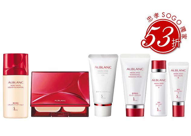 蘇菲娜輕燦妝長效粉底液、蘇菲娜輕燦妝無瑕粉餅、蘇菲娜輕燦妝無瑕粉餅粉盒、潤白美膚晶透潔顏露30g、潤白美膚瀅透水嫩瞬亮按摩晶30g、潤白美膚甦活露 升級版30ml、潤白美膚煥瑕修護乳 升級版11ml