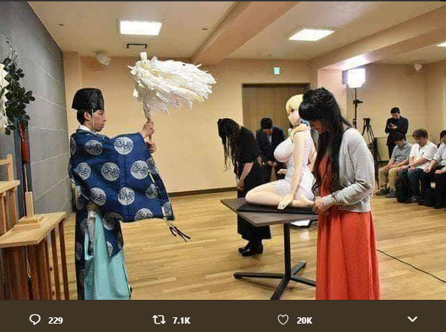 不過,日本既然有那麼多靈異傳說,在這方面似乎也不能缺乏貢獻?最近有網友就貼了一則推特,表示日本一家商店給自己的等身大巨乳模型辦驅邪儀式,還說聽說這個等身大巨乳模型有很多靈異傳說: