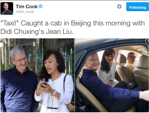 ▲ 先前庫克在中國也體驗過用滴滴叫車