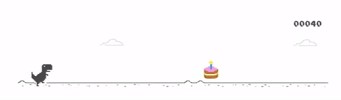本次 Google Chrome 大改版為了慶祝發布十周年,也特地將斷線小恐龍遊戲進行了更新,為「DINO」在奔跑的路徑上加入了生日蛋糕,頭上也追加了生日帽。