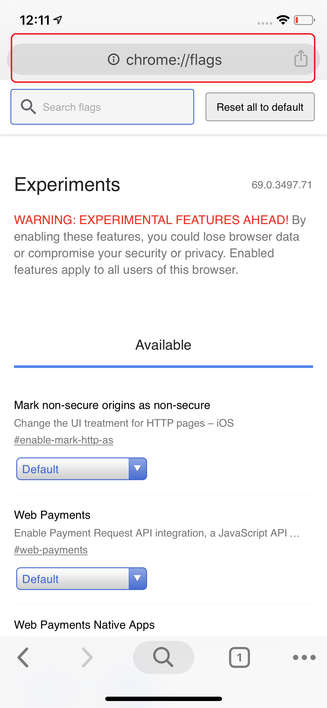 1.請先確定Google Chrome 已更新到最新版本,並在網址列輸入「chrome://flags」,進入實驗性功能頁面。