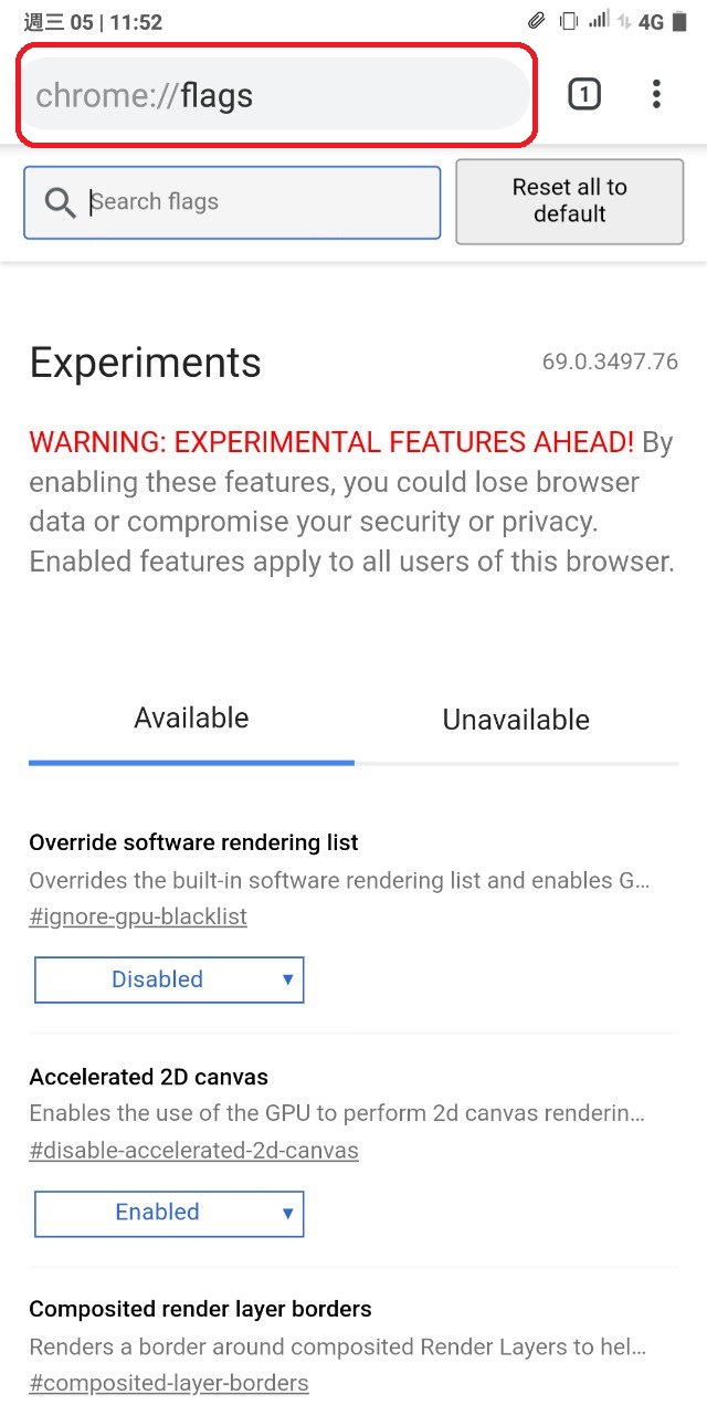 1.將 Google Chrome 更新到最新版,並在網址列輸入「chrome://flags」,進入實驗性功能頁面。