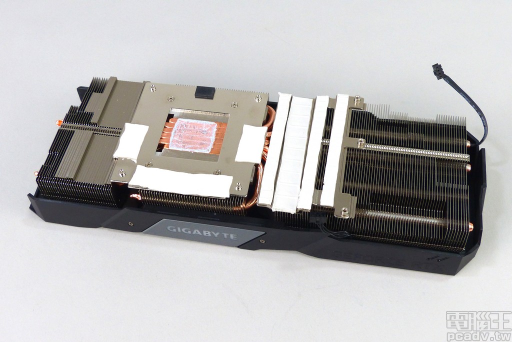 ▲WINDFORCE 3X 散熱器採用熱導管直觸設計,共安排 6 條 6mm 熱導管連結散熱鰭片和顯示晶片。