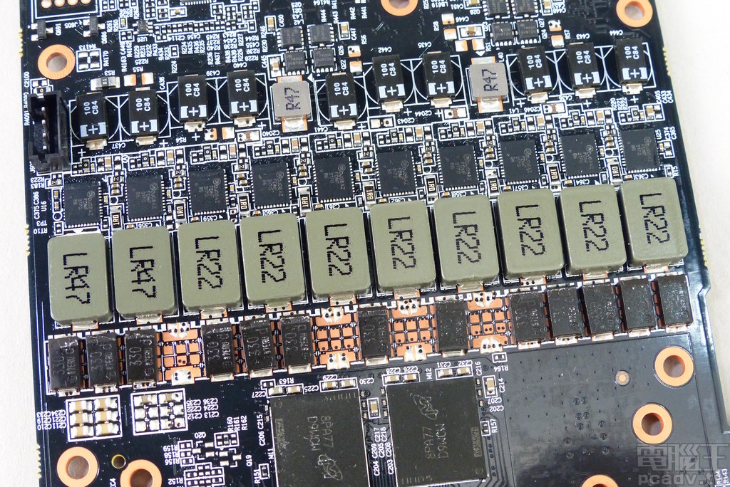 ▲顯示晶片核心單相使用 1 個 0.22μH 電感,記憶體主要供電單相則是 0.47μH 電感。