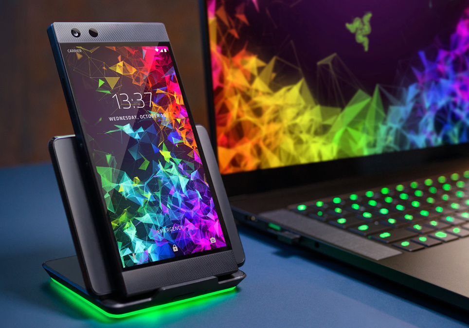 由於是電競手機,因此機身上當然還會加入一些電競的元素,包含螢幕採用 120Hz 更新率的 5.7 吋 UltraMotion IGZO 螢幕,亮度也比上一代提升 50%;機背加入 Razer Chroma 電競 RGB 燈效,可以用 1680 萬種顏色來顯示燈光效果,包含固定顏色顯示、循環燈效、呼吸燈效、或是針對不同 App 閃爍不同燈光等。雷蛇也為支援無線充電的 Razer Phone 2 打造了 Chroma RGB 燈效的無線充電座,放上去充電時依舊能有電競燈光。