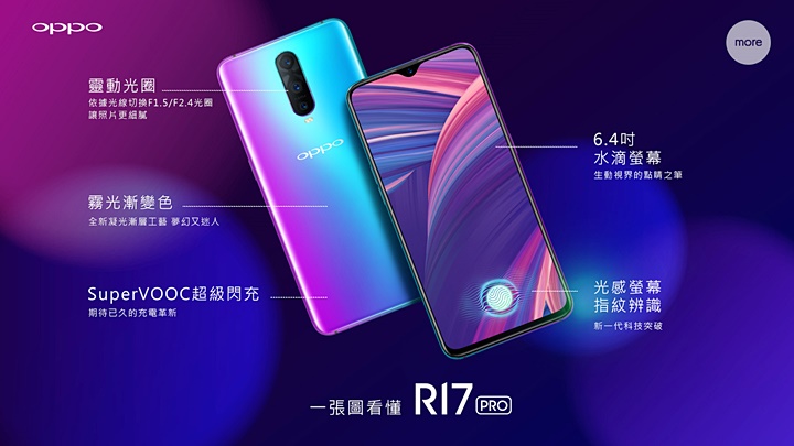 OPPO 在 R17、R17 PRO 開賣前先公布售價並推出預購活動,R17 售價 15,990 元,今日 18:00 開放預購,R17 Pro 售價 19,990 元,預計 11 月上市開賣。