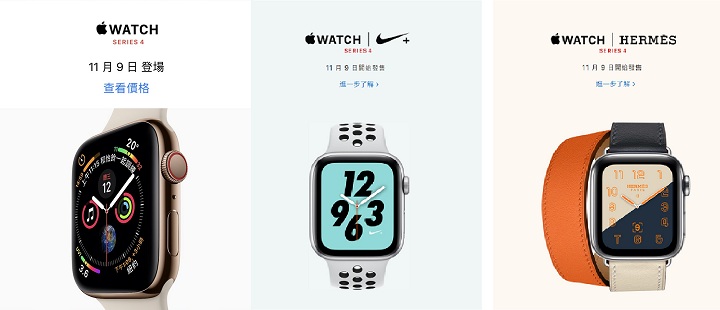 Apple Watch Series 4 將於 11 月 9 日開賣,Apple Watch Nike+ 與 Apple Watch Hermès 系列,也一併於蘋果官網公布價格。