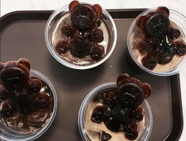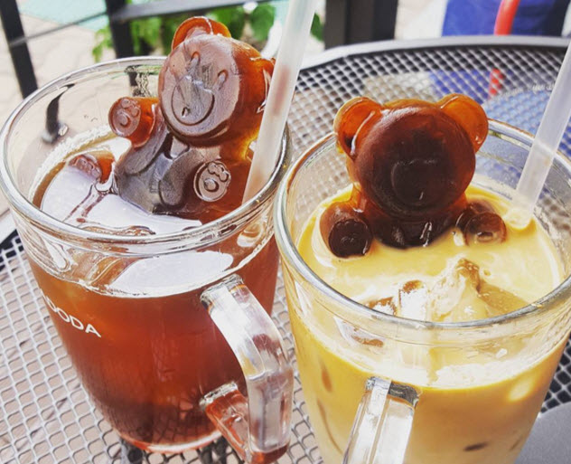 其實不管你點什麼咖啡都可以搭配熊造型的咖啡冰塊,其實小編覺得跟牛奶應該也很搭喔!大家不要以為這是沒有味道的冰塊喔,它可是由美式咖啡製成的冰塊,如果你與牛奶搭配就成了拿鐵咖啡喔~