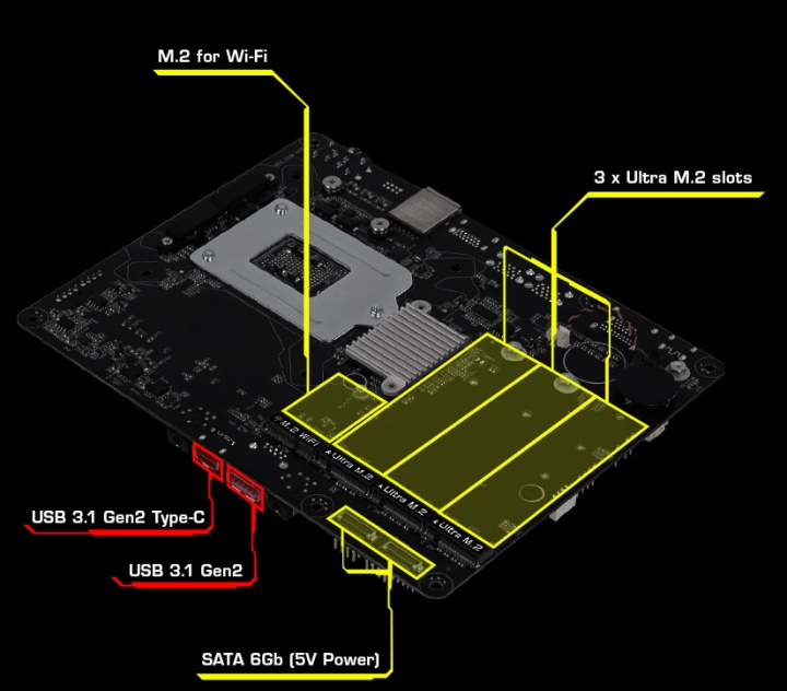 ▲ 3組M.2與2組SATA 6Gbs端子最多可連接5部儲存裝置。
