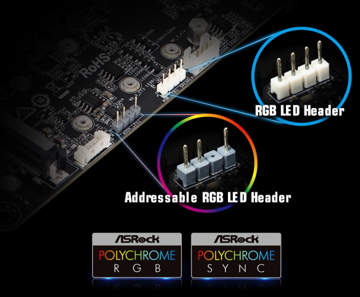 說到「電競」需求,Z390 DeskMini GTX不但保留前代產品的RGB燈光端子,可用於連接具彩色燈光功能的風扇或燈條,還額外加入支援WS2812B燈條的尋址RGB燈光端子(Addressable RGB LED Header),提供控制單顆LED顏色的功能,並ASRock PolyChrome RGB與PolyChrome Sync燈效控制與同步功能。