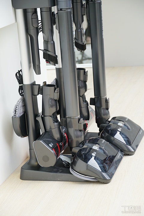 活動中也展示出新推出的智慧雙旋濕拖吸頭,系統會自動感測清潔過程中的濕拖水分需求,提供三段不同出水量,分別為高段模式每 6 秒出水一次、低段模式每 8 秒出水一次、及停止模式,讓雙馬達旋轉拖布保持適當濕度。這款吸頭也能收納在三用收納式充電座,智慧給水箱、濕拖吸頭蓋及雙旋濕拖布墊可以簡單地拆開做清洗,讓清潔工作做起來更順手方便。