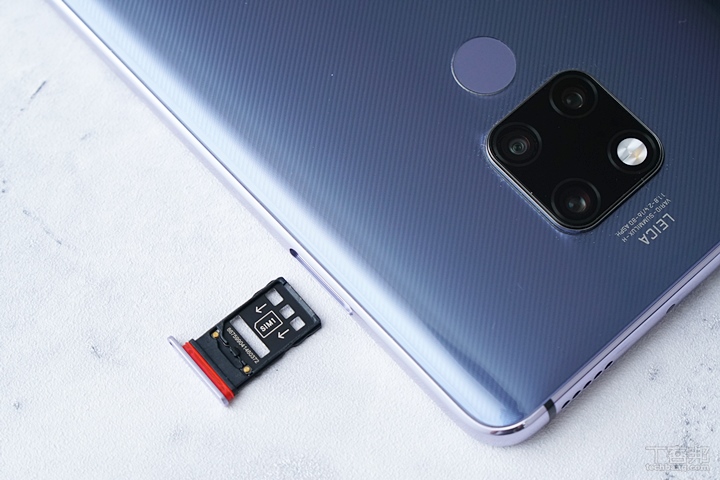 ▲ 台灣推出的顏色為幻影銀,機背上有指紋辨識器以及 Mate20 系列特色的矩陣鏡頭設計。