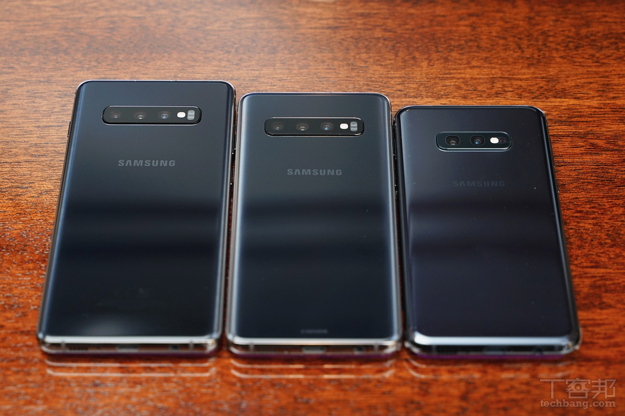 ▲ 由大到小分別為 Galaxy S10+、Galaxy S10、Galaxy S10e,前兩者為三鏡頭,最小的 S10e 為雙鏡頭。