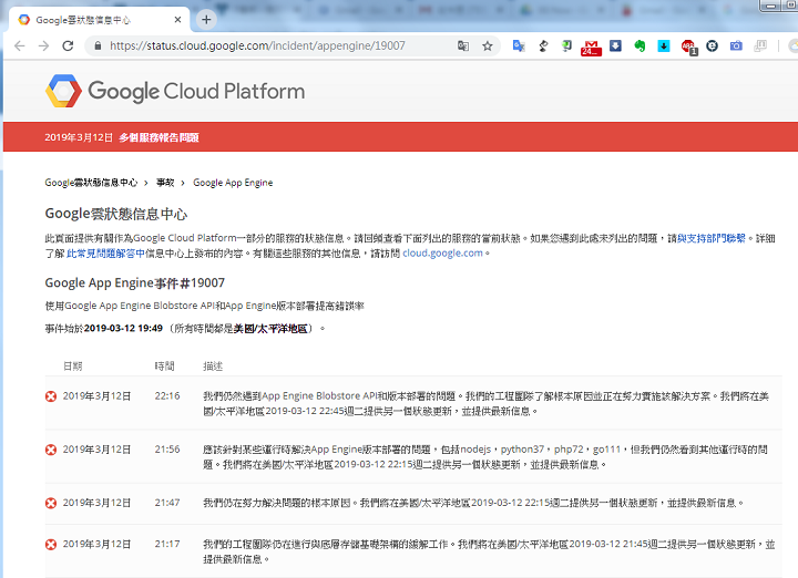 另外,Google 官方回應:「我們已經瞭解Gmail和Google App Engine上發生的問題,請到 Google Cloud STATUS Dashboard和G Suite Status Dashboard 網頁獲得更多資訊。」