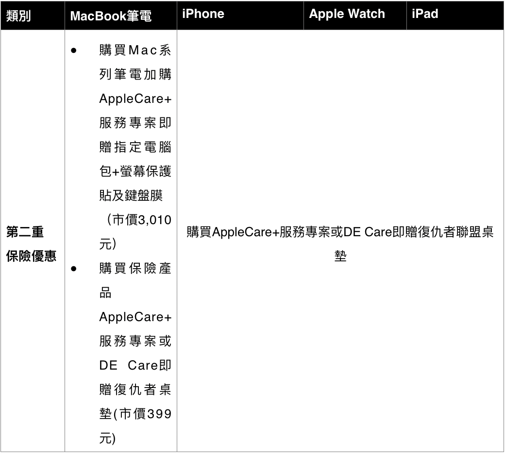 另外,購買 AppleCare+ 服務專案或 DE Care 就送復仇者聯盟大型滑鼠桌墊,購買指定款手機殼再送 lululun 面膜,若是在遠東百貨門市檔期購買,還有刷九大銀行信用卡分六期服務,以及還有滿萬送 500 元抵用券。
