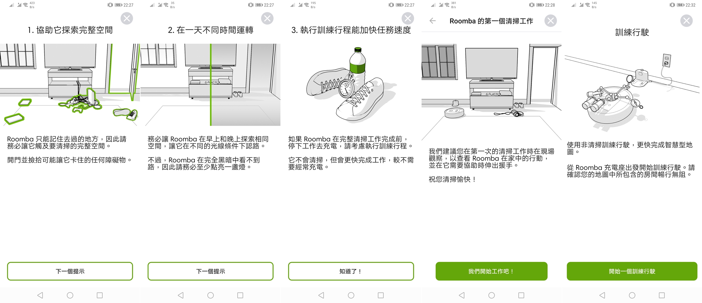 在應用程式中會有教學告訴使用者最好在不同時間讓掃地機器人出動來學習家中環境,而且環境中最好不要有散落的雜物,因為 Roomba i7+ 只會記得去過的地方。
