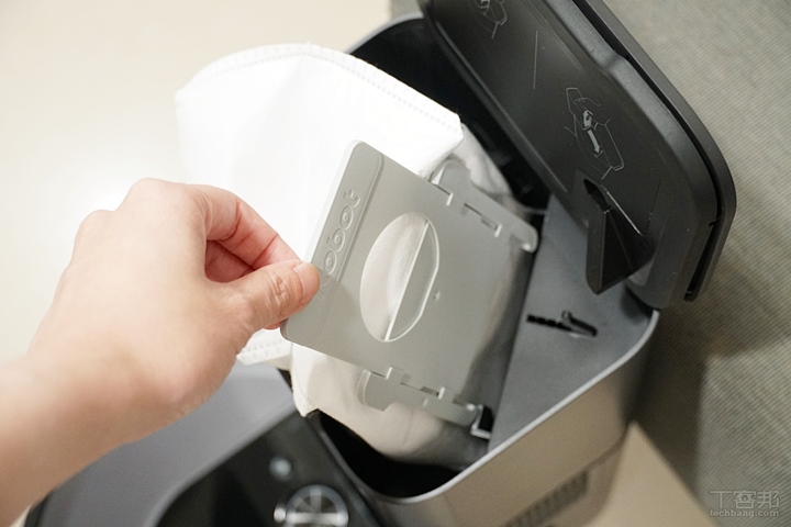 集塵座設計最大的優點在於,使用者可以拉長清潔集塵盒的時間,過往可能一周要清潔一次集塵盒,改用 Roomba i7+ 後可以幾個月再清潔一次集塵袋,加上集塵袋採用特殊拉環封口,只要拉起拉環就可以把集塵袋拎起來丟到垃圾桶哩,對於比較不勤於清理的人是個頗方便的設計。