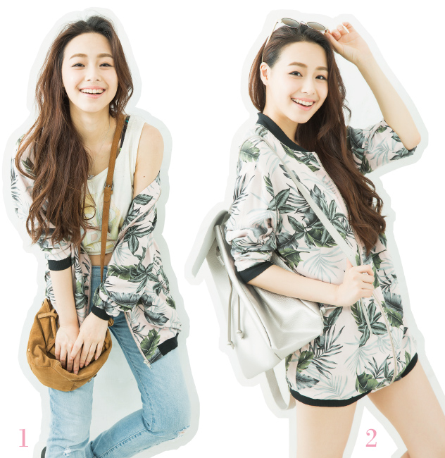服裝提供/PULL&BEAR印花長版夾克外套NT1490、手繪感印花背心NT590、單寧吊帶短褲NT990、白色邊框墨鏡NT490、BERSHKA低腰合身牛仔褲NT1490、緞帶淺色草帽NT590、ZARA串珠真皮小型水桶包NT2790、圖騰領巾NT450、翻蓋背包NT990、金屬色橡膠底運動鞋NT1290、金屬厚底涼鞋 價格店洽