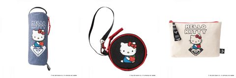 ROXY X HELLO KITTY聯名系列配件,包含筆袋、零錢包、化妝包。