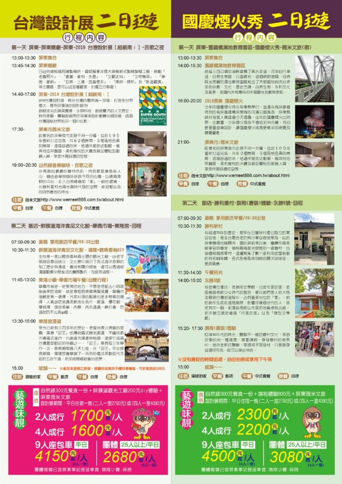 歷史悠久的東隆宮,是東港的信仰中心。(攝影/廖苡安)以上兩個遊程不僅行程豐富,而且價格也很親民喔!「台灣設計展二日遊」2人成行,每人只要1,700元起;4人成行,每人只要1,600元起;9人作包車和團體另有優惠價。「國慶煙火秀二日遊」2人成行,每人只要2,300元起;4人成行,每人只要2,200元起;9人作包車和團體另有優惠價。快相揪親朋好友,一起來報名體驗吧!(報名網址:)