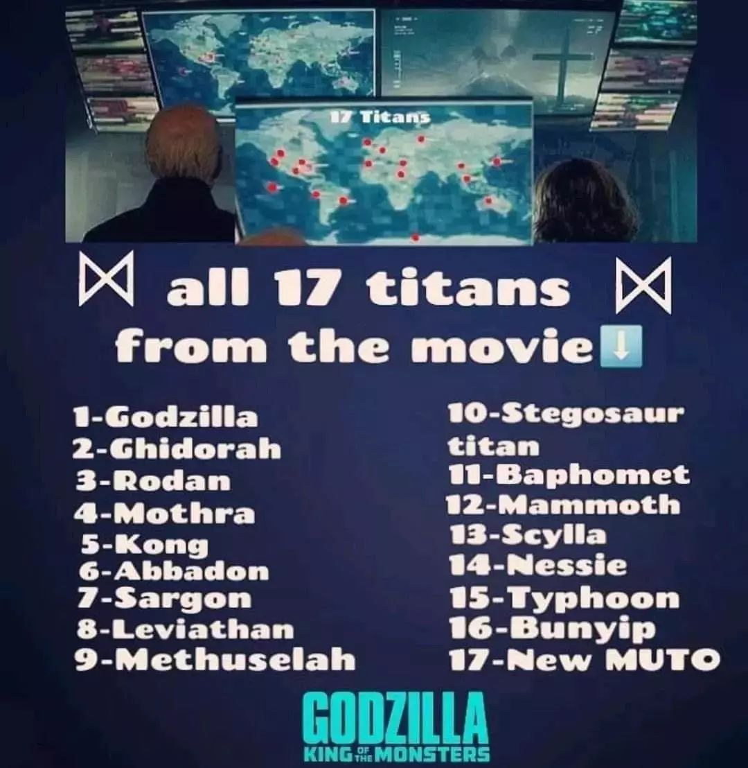 以上這3隻經典巨獸,即將在大銀幕與哥吉拉相會,且除了這些大名鼎鼎的怪獸外,官方也已經公布了其他登場的13隻怪獸,雖然目前尚未確認這些泰坦的真面目,但也已經有不少影迷從命名來試著推測牠們的可能造型。