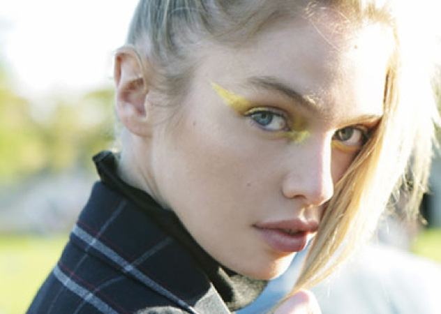 超模Stella Maxwell示範以金色眼影為重點的眼妝,不須眼線也能讓金色色塊帶出整體神韻。