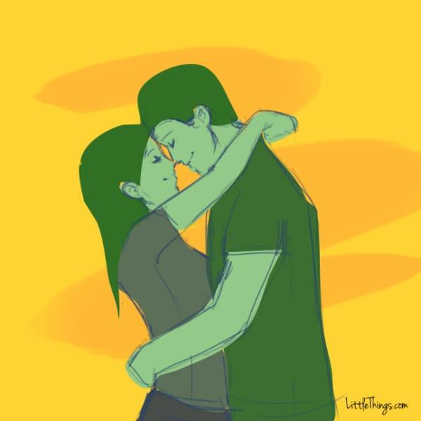 其中一人一手環抱伴侶的腰,另一人則環住對方的脖子,像是高中舞會那樣的慢舞,而這種擁抱意味著「浪漫」,而且是很多很多的浪漫;這種擁抱常見於年輕人、熱戀期的情侶間,如果你們在一起很久了還是如此擁抱對方,那代表你們真的是一對非常講究浪漫的情侶。