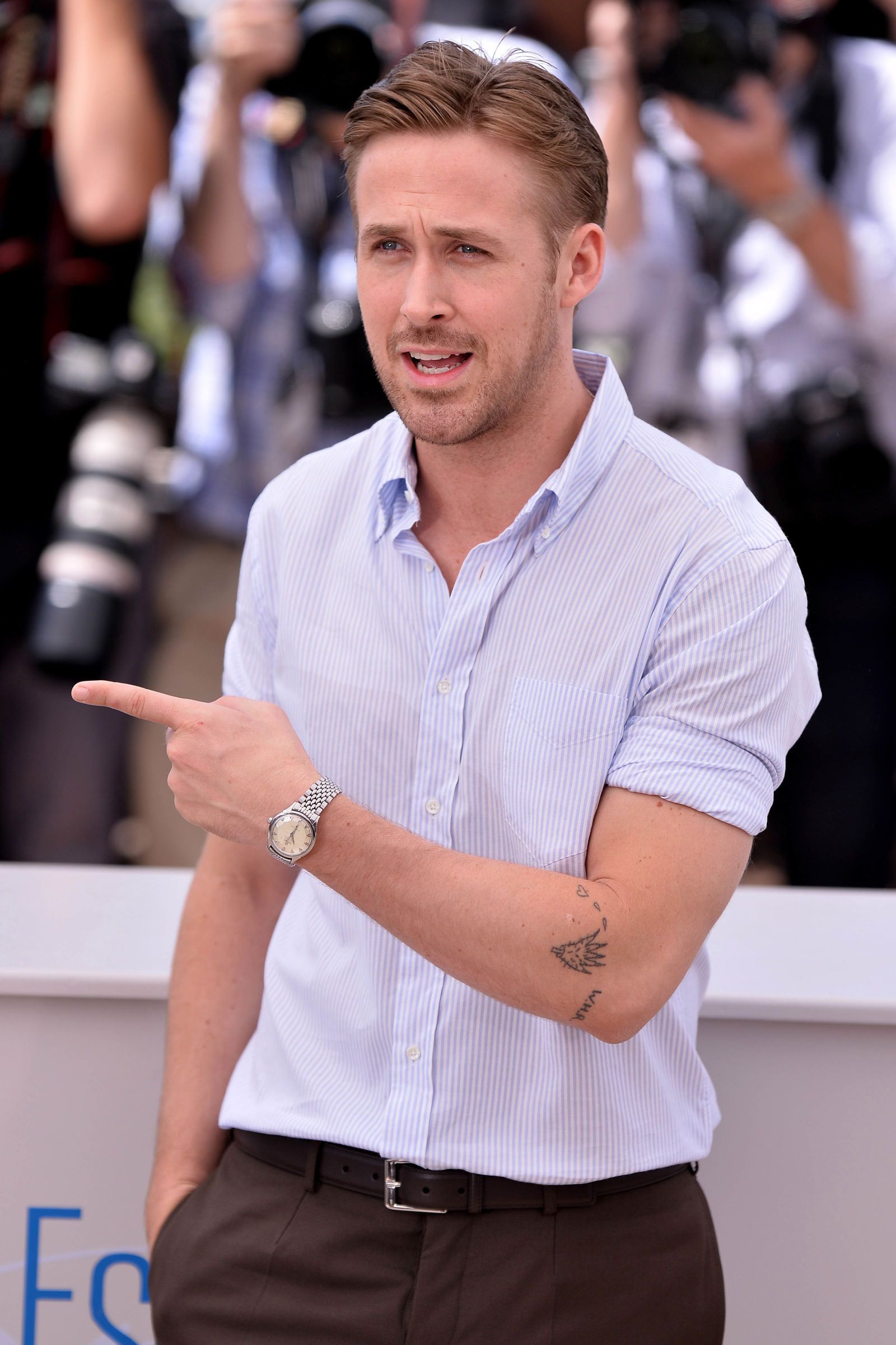 還記得在電影《末路車神》中,萊恩葛斯林的全身甚至連臉上都佈滿了刺青,但在現實生活中的他事實上只有五個紋身。其中一個是在他左手臂上,看起來像仙人掌,但其實應該要是一隻怪獸的手,與正淌血的心臟圖案。