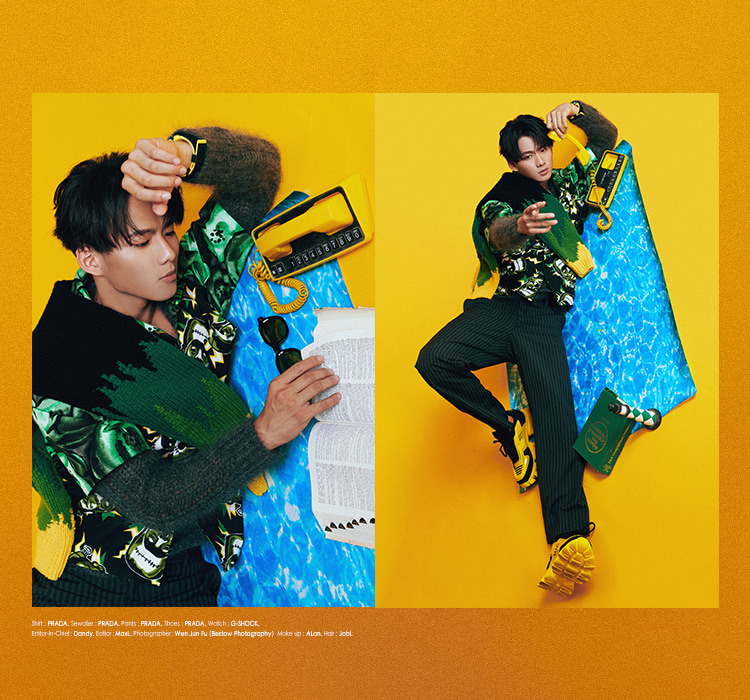 ▲ 襯衫、毛衣、褲子、鞋子:PRADA/手錶:G-SHOCK/墨鏡:ACCRUE
