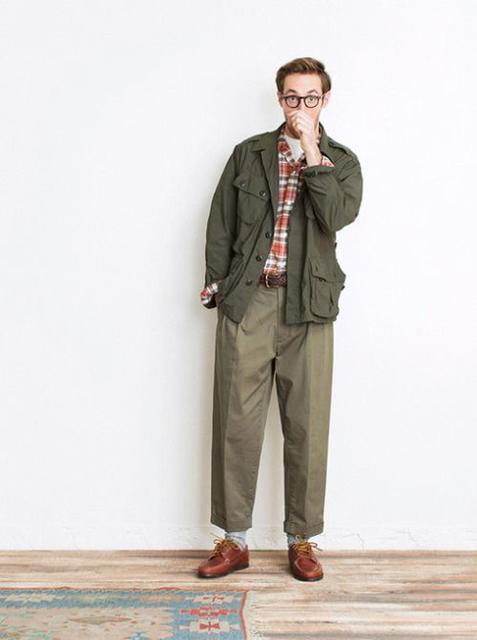 提到軍裝穿搭,不自覺就會聯想到「大地色系」的穿搭法,因為軍綠、墨綠、卡其、駝色這些顏色總是很搭嘛,除了是軍隊的標準配色外,大地色系還會給人一種自然、柔和又溫暖的感覺,只要搭配得宜,就能晉升微涼秋日裡的超級暖男!