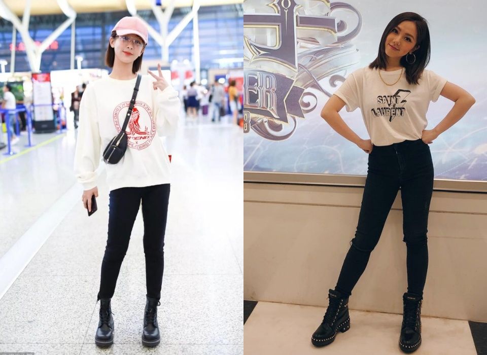 楊冪長髮、氧氣瀏海,再穿上小洋裝與馬丁靴,簡單又甜美的穿搭方式,任何身材都好駕馭。矮個子女孩這樣穿搭,會有種洋娃娃的軟萌氛圍,想抱緊處理;高個子則有種鄰家女孩的俏皮感。