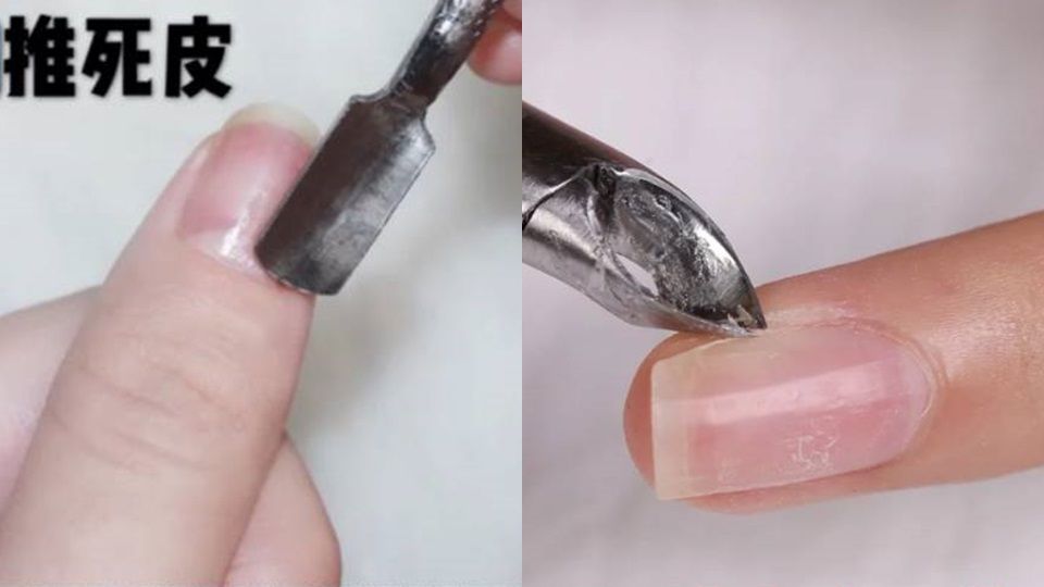 接著拿出死皮推棒,將指甲邊緣的死皮推開,再拿出死皮剪剪掉在手指和指甲邊緣的死皮~讓甲緣更乾淨!