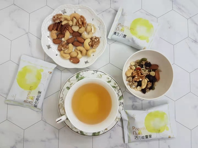 由四種果仁組合而成,內含多種微量元素,補充身體所需多種維生素、礦物質、膳食纖維