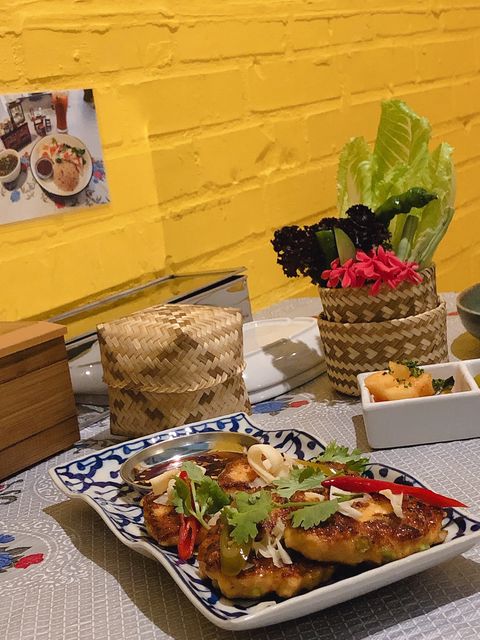 一秒到曼谷!有別於金碧輝煌的泰國皇宮料理,曼谷藍帶大廚Calvin選擇將成長回憶轉化為料理,把泰國街邊小吃精緻化,揉合時髦擺盤,開了泰式餐酒館「烤寨KAO JAI THAI BISTRO」!他說,烤寨Kao Jai在泰文裡是理解的意思,希望大家藉由他的料理更加理解泰國!像是泰北料理拉ㄅ鴨、正宗的泰式椰子蝦餅、檳榔沙拉⋯⋯都是他自道地泰菜取材、時髦演繹的必嘗料理!還有大廚用心從泰國帶回來的各種裝飾小物,都讓餐廳洋溢泰國曼谷街頭般的熱鬧氛圍!