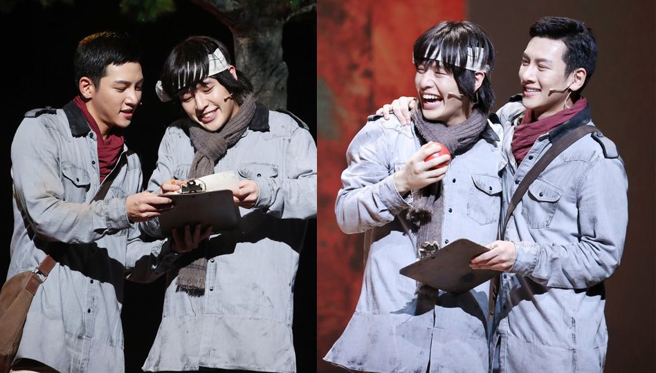 池昌旭和姜河那最近都有新劇在熱播,不過他們之前可是一對CP。之前在音樂劇《Thrill Me》裡,池昌旭和姜河那飾演一對同性戀人,裡面有很多擁抱、接吻的親密戲。
