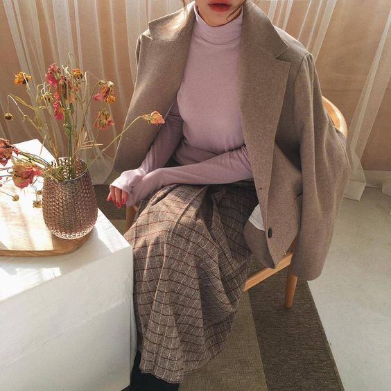 ▼如果裙子或襯衫是有花紋的,那再搭個簡單素色的外套會更加顯眼。