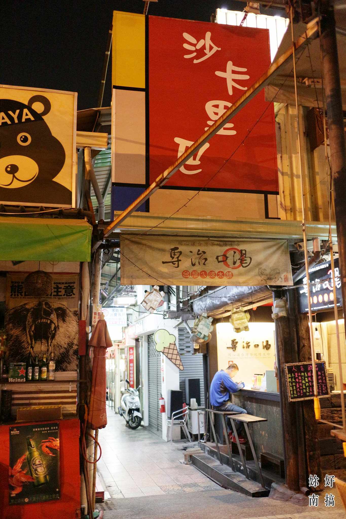 從中正路小巷子穿過來到沙卡里巴,只剩零星的攤販還開著,但舊時的宣傳海報還留著,往日的榮景似乎還歷歷在目,即使如此,不變的是師傅的手藝,老牌的乾炒鱔魚意麵,嚐到的是台南人對於食材新鮮的執著,炒、煮功夫的精深。