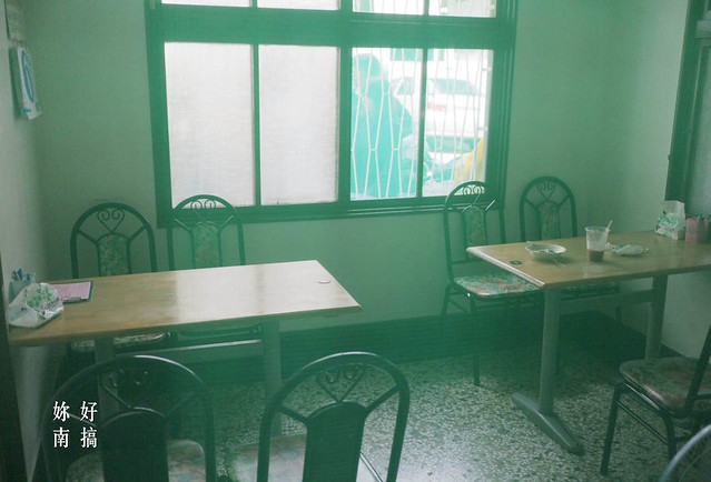 簡單擺設的桌椅以及貼滿古早磁磚的儲冰箱 ,