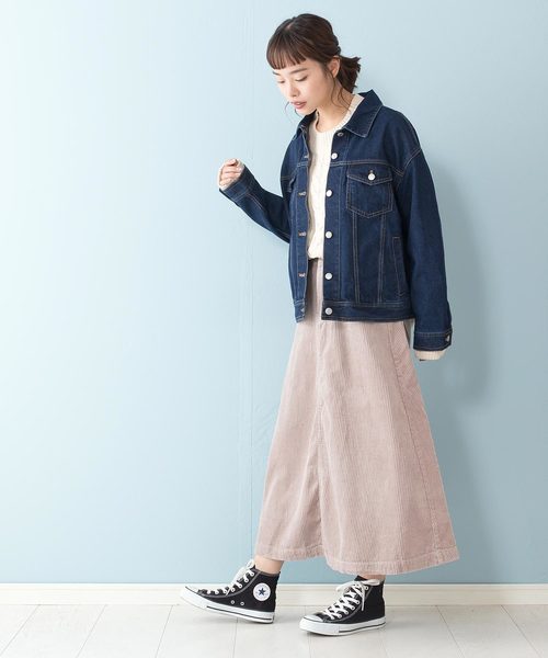 穿搭長裙時總是要展現比較女孩感一點的風格感,但即使選搭牛仔外套也可以不擔心讓整體太過休閒,只要利用圓領的款式就可以平衡出恰到好處的優雅效果。