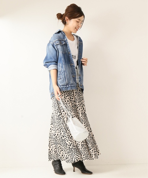 牛仔外套 X 動物紋長裙