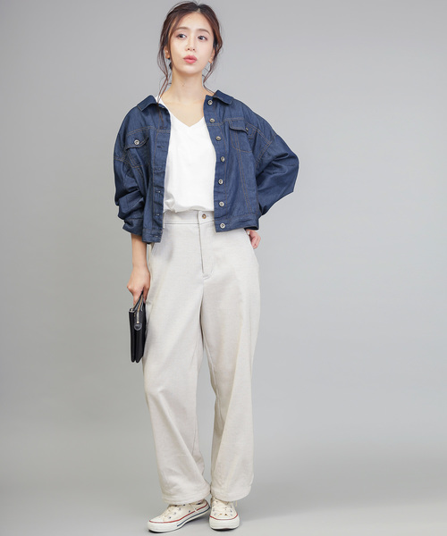 以寬褲搭配高跟鞋履,大人感的女人味印象在這樣的搭配上相當顯著。想要營造輕鬆一點的氛圍時,利用牛仔外套就能將穿搭多上幾分休閒氣息。
