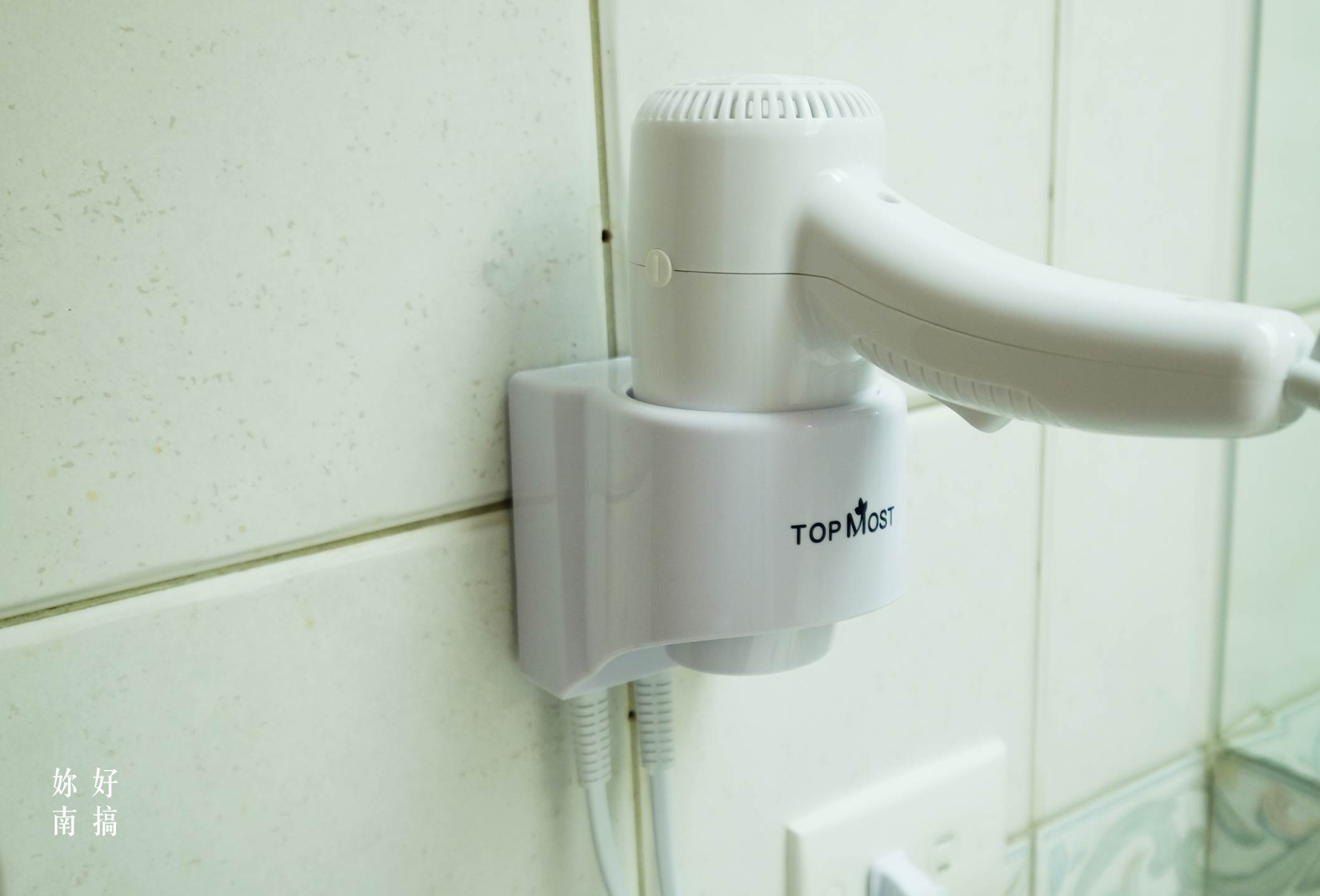 牙刷、牙膏、沐浴乳、洗髮精、香皂、梳子、浴帽等一應俱全 , 吹風機採壁掛式。