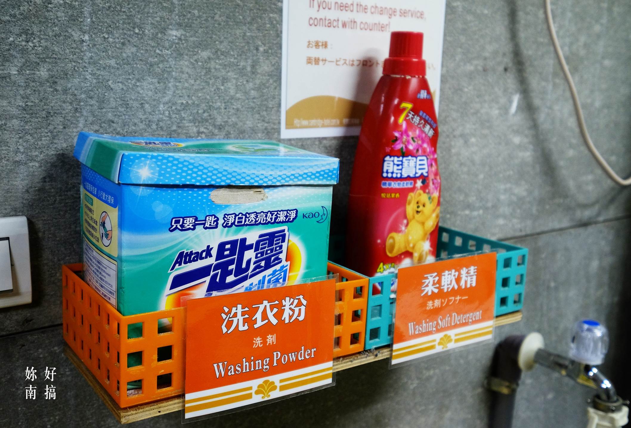 旁邊還有熊寶貝洗衣精 , 把衣服洗香香 , 能夠神清氣爽的繼續旅程。
