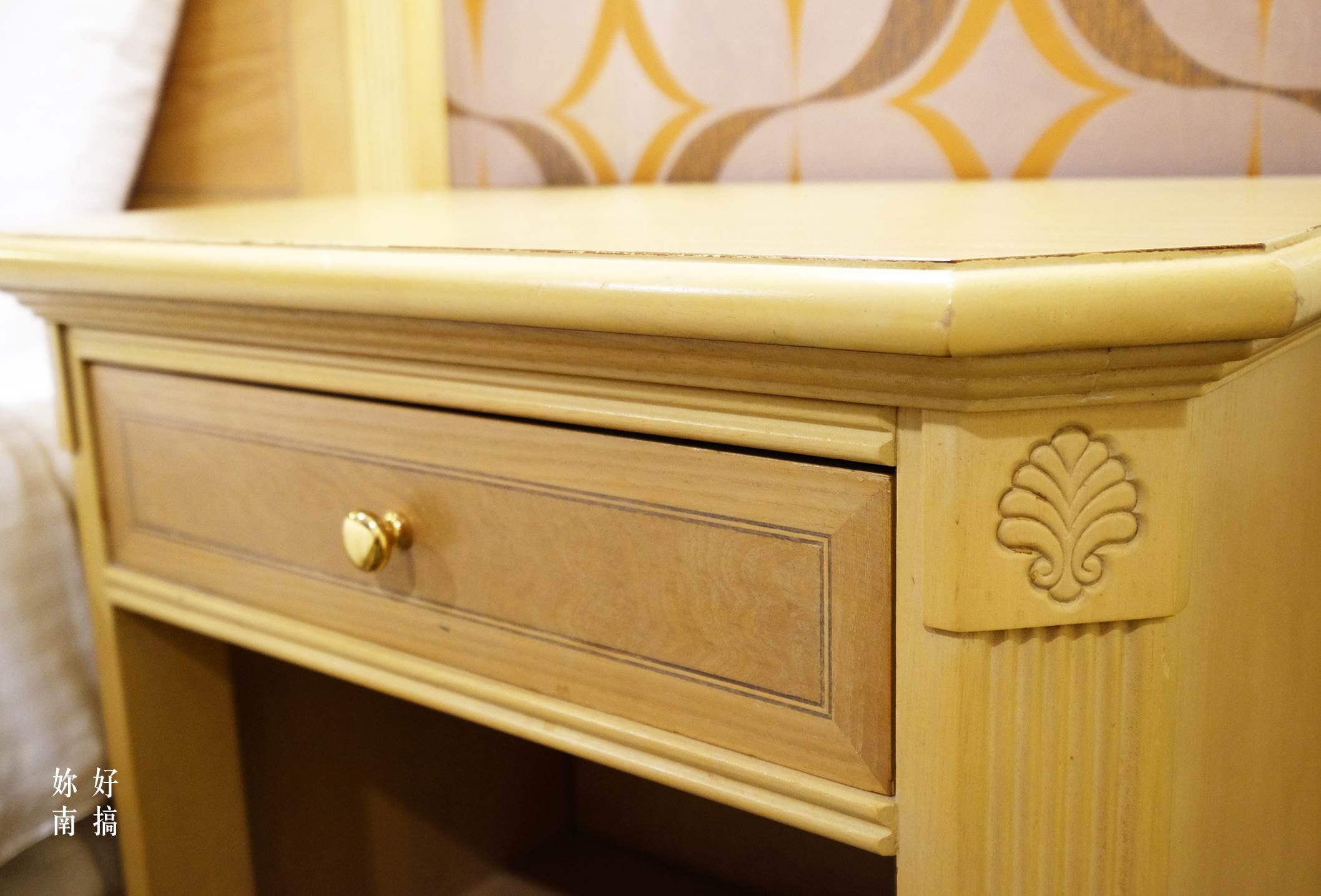 全館的傢俱均是精心設計打造 , 洋溢著歐洲英式品味 , 仔細一瞧 , 還可以發現在傢俱的邊角有著劍橋旅店的LOGO標誌 ,