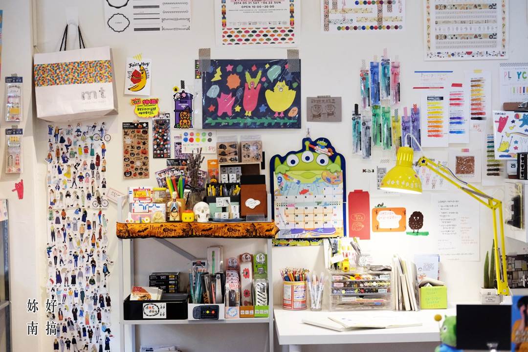 一入店內,被充滿豐富的擺設童趣的擺設所驚豔到(沒有擺設天分的我只能甘拜下風XD)每面牆、每個角落都不難看出主人精心佈置有紙膠帶區、貼紙區、鋼筆區、試寫區以及最具店長風格的小物區!