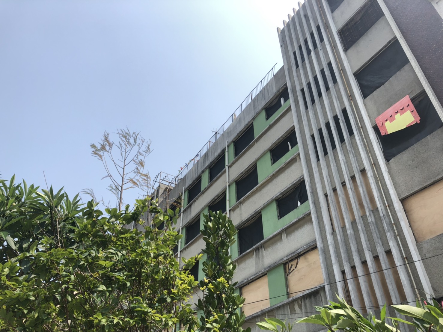 雖說廢屋位在鬧區,但早上往來車輛不多,冷清的大街也就增添了些許陰森的氛圍。我好奇的上網查了資料,得知這間廢屋共有七層,叫「杏林醫院」,在1975年由三名台大醫院的醫生合資開設,當時的市長還曾經稱讚過這間醫院高明的醫術呢。然而由於院方不斷違反醫療法規,最終在1993年被勒令停業。停業後大樓一直沒被拆除,就這樣閒置了近二十年。現在,在各種靈異傳聞的加持下,這棟廢屋反倒成了台南最知名的鬼屋。